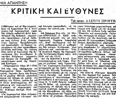 Ο ΕΛΑΣ της Κέρκυρας, ο Αλέκος Πρίφτης και ο Άρης Βελουχιώτης