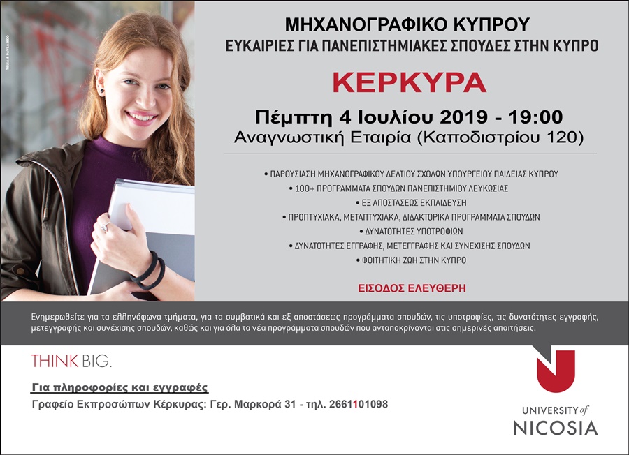 Το Πανεπιστήμιο Λευκωσίας παρουσιάζεται στην Κέρκυρα