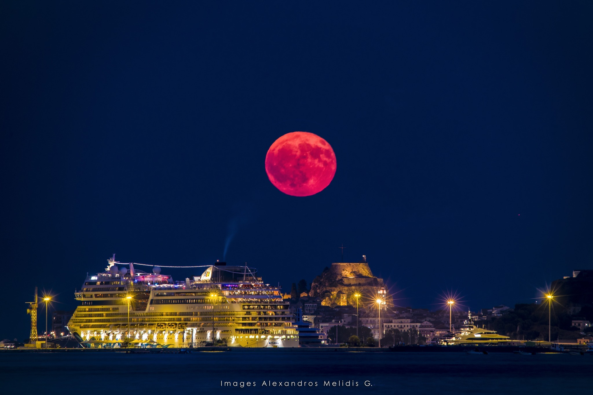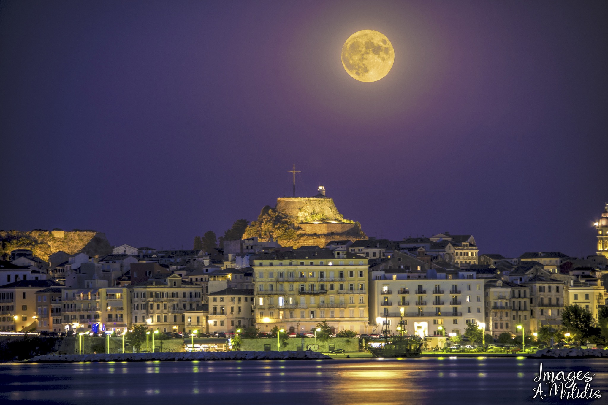 Tο «ματωμένο» Αυγουστιάτικο Φεγγάρι πάνω από το Παλαιό Φρούριο