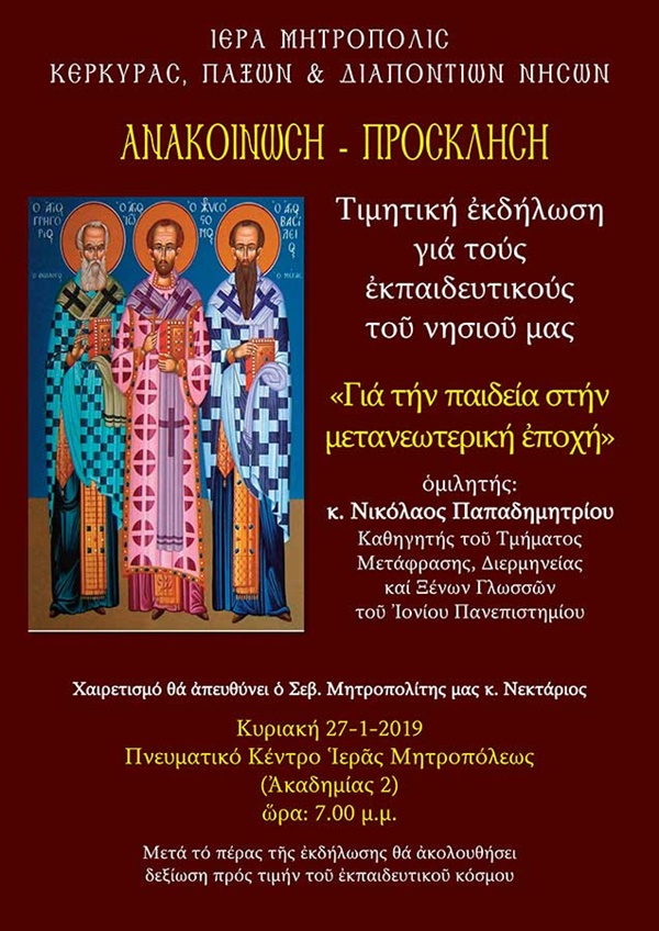 Εκδήλωση προς τιμήν των εκπαιδευτικών από τη Μητρόπολη