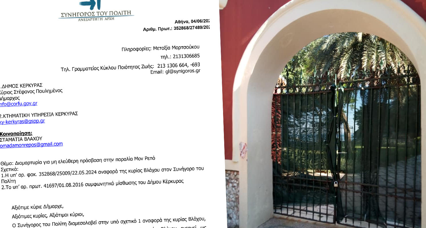 Συνήγορος του Πολίτη: Λύση της εκμίσθωσης αν δεν ανοίξει η παραλία στο Μον Ρεπό!