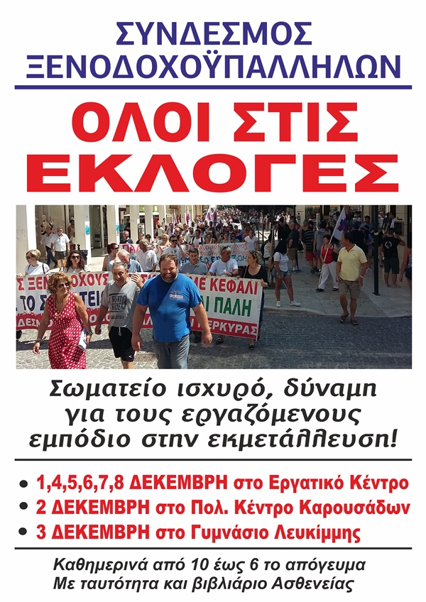 Αγωνιστική Παρέμβαση Ξενοδοχ/λων: Αρνούμαστε να συμμετάσχουμε στην εκλογική διαδικασία