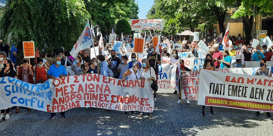 Πολυπληθής η πορεία των ξενοδοχ/λων στην Κέρκυρα