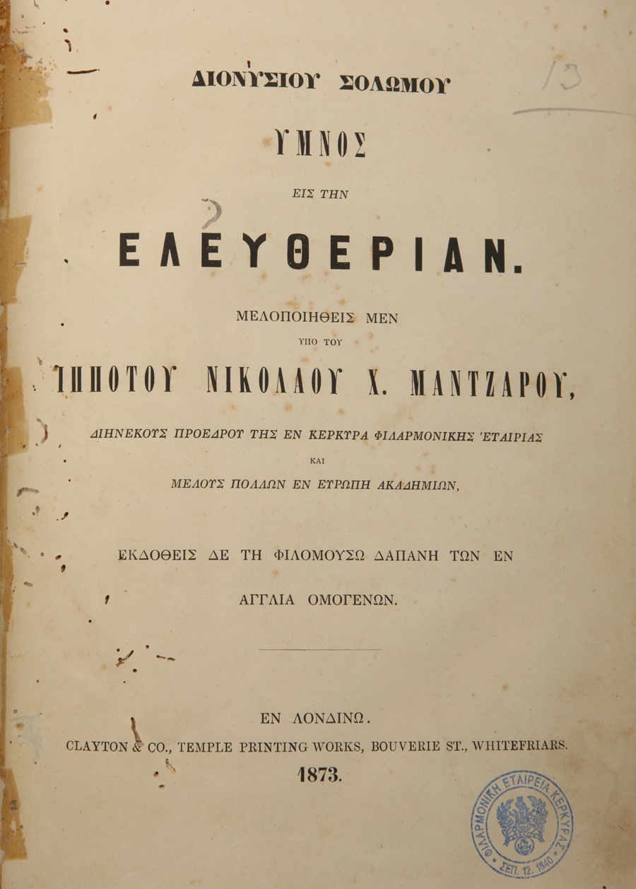 10 Ιουλίου 1865: Ο «Ύμνος των Επτανήσων» καθιερώνεται ως «Εθνικός Ύμνος της Ελλάδος»