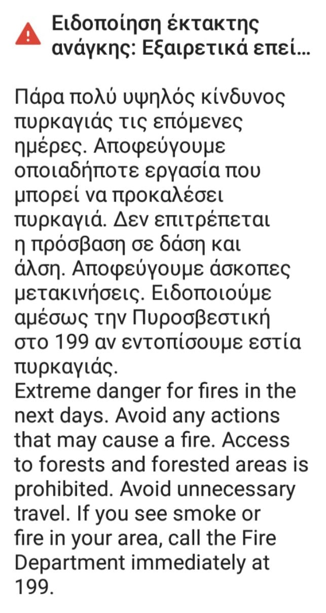 Mήνυμα Alert (και) στην Κέρκυρα: Δεν επιτρέπεται η πρόσβαση σε δάση…