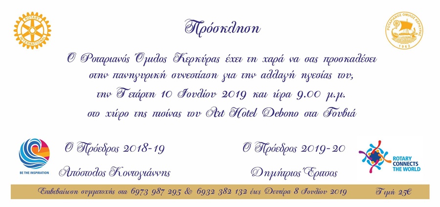 Στις 10 Ιουλίου αλλάζει η ηγεσία στο Ροταριανό Όμιλο Κέρκυρας