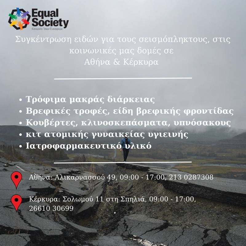 Equal Society: Συλλέγει τρόφιμα και είδη πρώτης ανάγκης για τους σεισμόπληκτους Τουρκίας και Συρίας